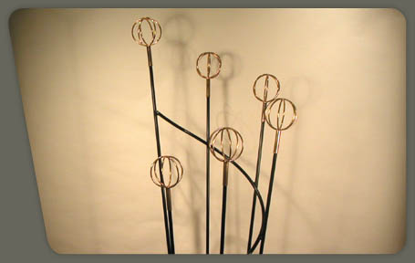 description : black wrought iron structure with gilded spherical metal tips.