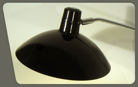 description : chromed metal base with a swivel arm in chromed metal. Black lacquered metal shade. Manufacturer: Knoll Associates