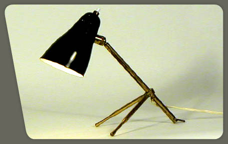 description : double function lighting, lamp and sconce, adjustable black lacquered metal shade with brass arms, push button switch on the top of the shade