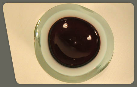 description : piece de verre epaisse composée de 3 différentes couleurs, vin, blanc-laiteux, et transparent