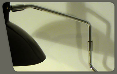 description : chromed metal base with a swivel arm in chromed metal. Black lacquered metal shade. Manufacturer: Knoll Associates