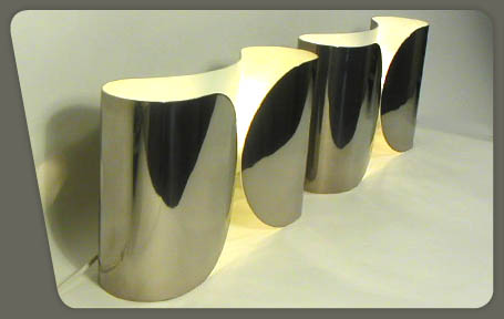 description : "Foglio" style, enameled and chromed steel. Constructed from a simple chrome ribbon with internal white enamel, Flos editor, Italy
