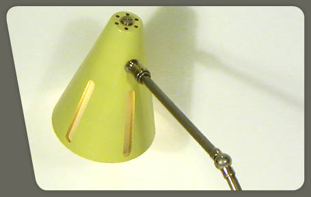 description : swivelled yellow lacquered metal shade punched with alveolus, hold with a adjustable chrome arm, fixed on a black lacquered metalic base