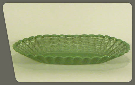 description : breadbasket made of pleated perforated sheet metal named "Rigitulle", almond green color