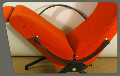 Pressed and tubular black steel frame with latex-foam upholstery and rubber-covered steel spring arms,can be manipulated into hundreds positions!