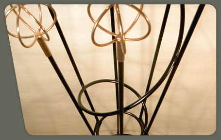 description : black wrought iron structure with gilded spherical metal tips.