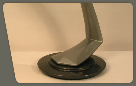 description : brass lamp lacquered with a metalic finish in 2 different grey color, flexibal spherical shade with opal glass and arm swiveled on its base