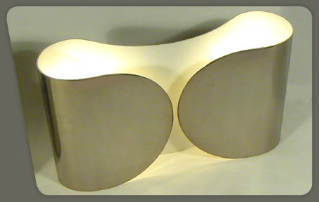 description : "Foglio" style, enameled and chromed steel. Constructed from a simple chrome ribbon with internal white enamel, Flos editor, Italy