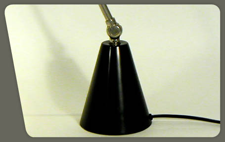 punched with alveolus, hold with a adjustable chrome arm, fixed on a black lacquered metalic base