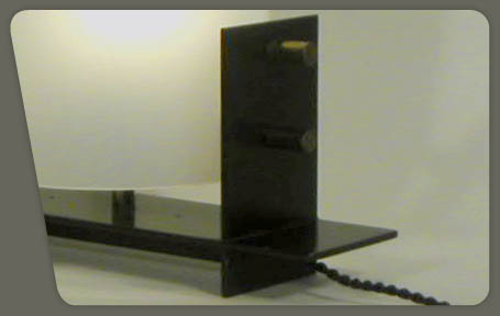 description : black lacquered metal base on which stands a tubular plexiglass shade, and a push botton switch on the front. Edited by EFA
