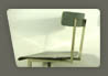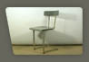 description : chaise post-moderne hollande, dossier et assise en bois laqué gris fixés sur une structure métallique teinté gris reposant sur 4 patins de bakelite