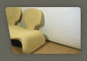 description : "Djinn series", bent tubular steel frame, covered polyurethane foam upholstered with ribbed off white jersey wool
