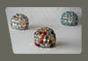 description : technic of the stained-glass window, the Photo-Dôme are photophores made of glass marbles and fixed together by tin soldering. A candle is put down in the center of a miror base.
